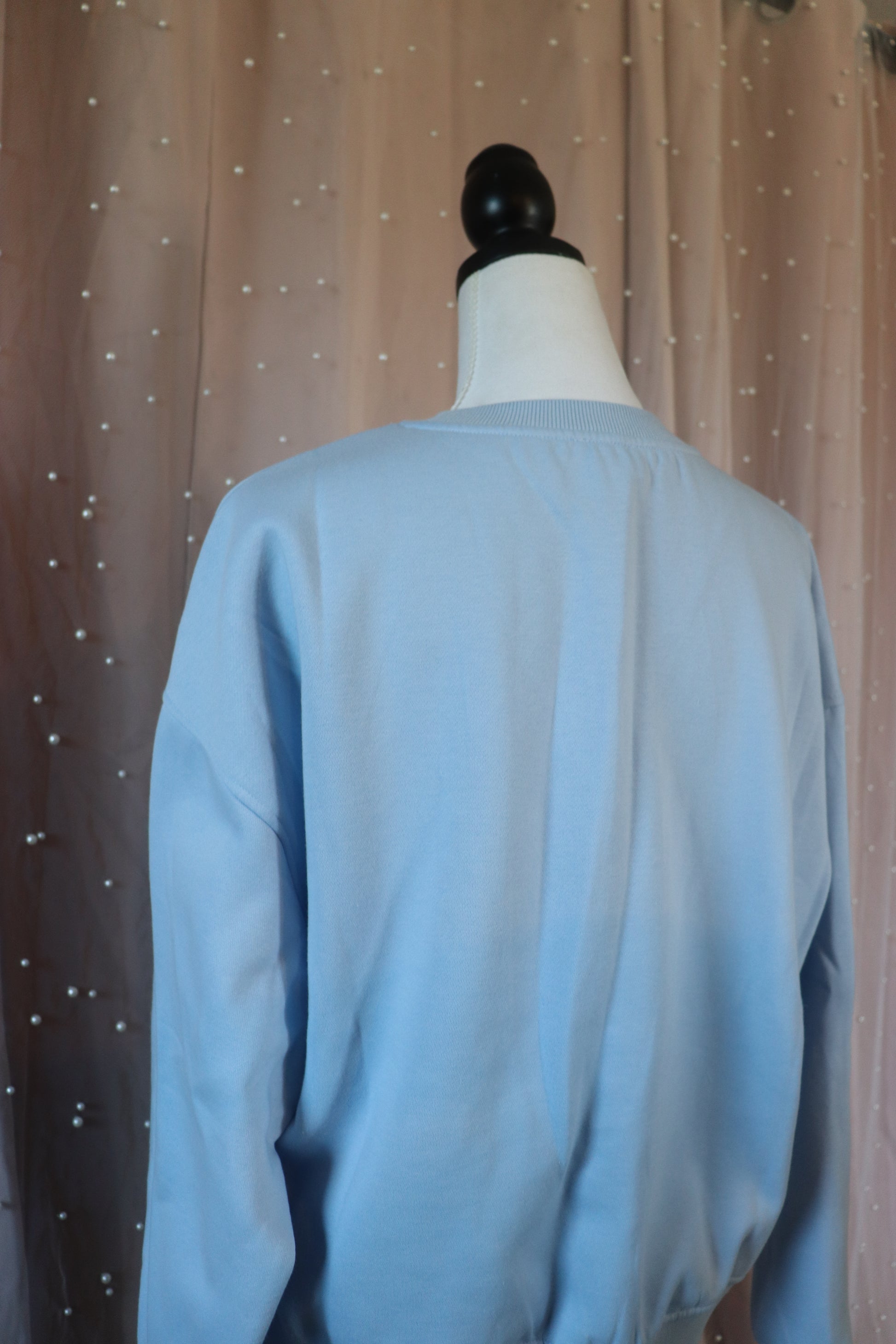 Stay cozy in our light blue sweatshirt — the ultimate blend of laid-back vibes and everyday comfort. With its soft feel and relaxed fit, it’s perfect for pairing with your favorite denim or leggings for an effortlessly cute look.